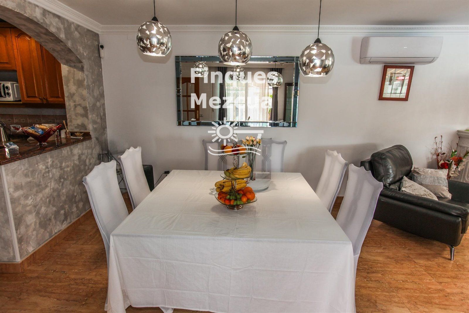 Un refinado salón-comedor de 40 m², presidido por chimenea, se abre a una terraza de 12 m² con agradables vistas al campanario y a la zona de piscina.